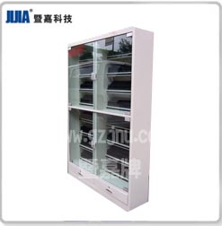 智能光盤柜就是在光盤柜的基礎(chǔ)上加安裝了單片機(jī)控制器,LED燈,通過(guò)計(jì)算機(jī)控制LED燈發(fā)光定位的光盤管理設(shè)備。通過(guò)專門的軟件進(jìn)行管理,并與電腦連接使用的光盤柜。此種光盤柜為現(xiàn)今光盤柜的發(fā)展趨勢(shì),眾多圖書館、檔案館都采用智能光盤存儲(chǔ)柜。